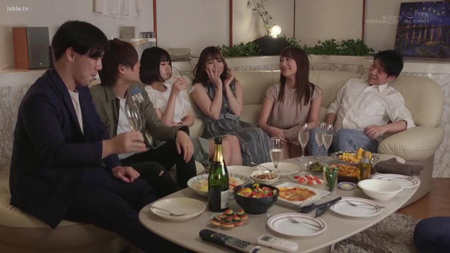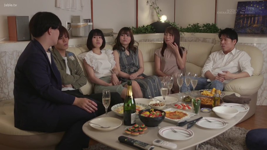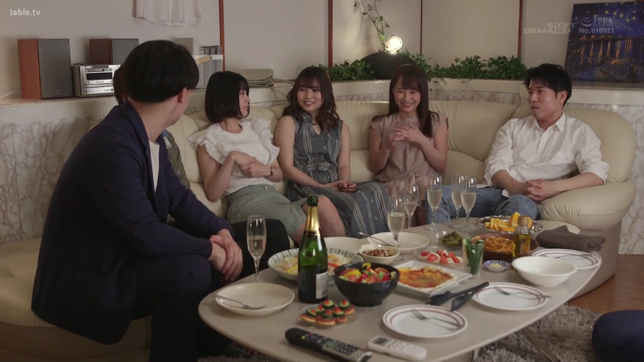 坐姿 · 全景 · 客厅 · 多人 · 常服 · 开心 · 酒水 · 聚会