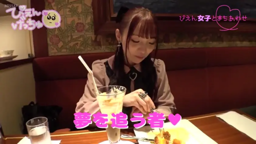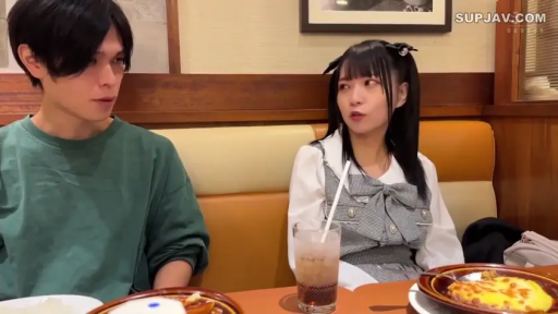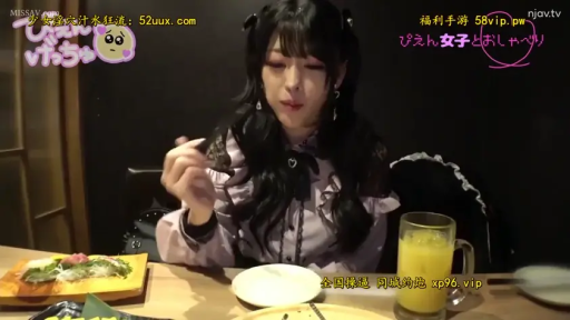 坐姿 · 中景 · 自然 · 餐厅 · 进食 · 日文字幕 · 叉子 · 粉色荷叶边上衣