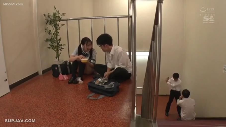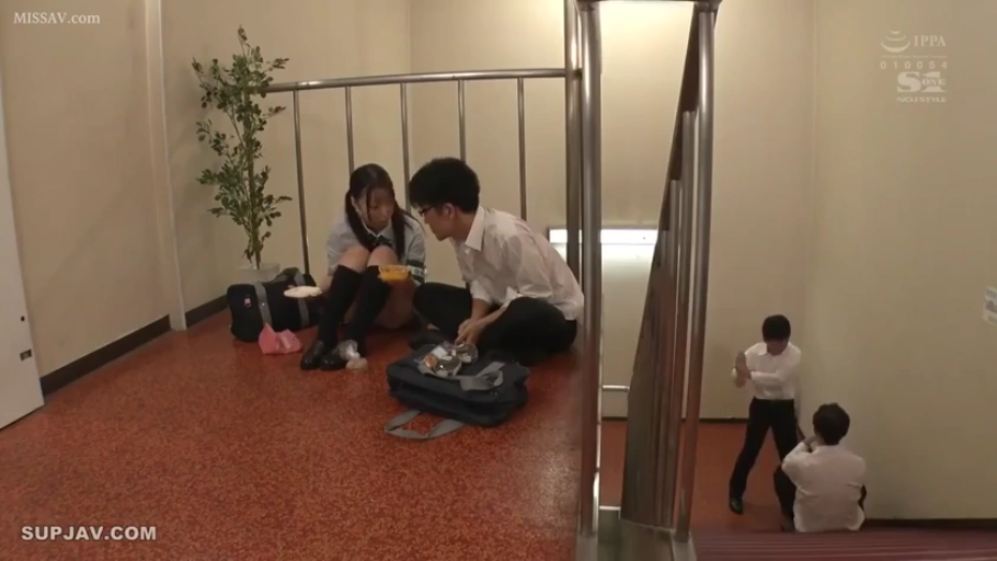 坐姿 · 交谈 · 中景 · 自然 · 楼梯间 · 多人 · JK制服 · 书包