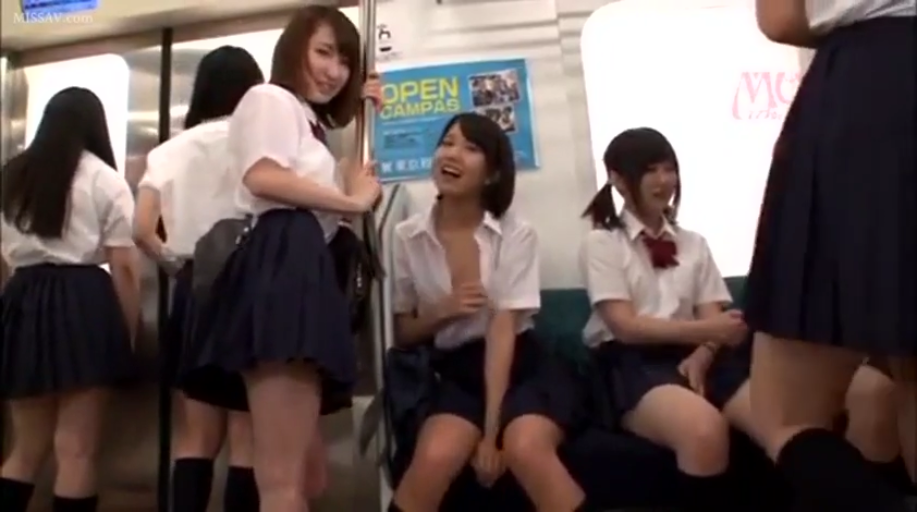 全身 · 站立 · JK制服 · 笑容 · 痴汉 · 掀裙 · 电车 · 书包