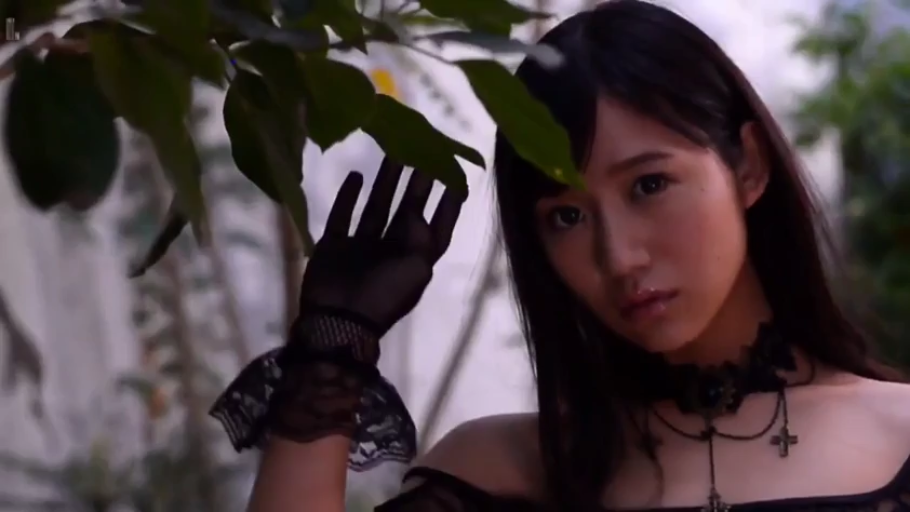 面部特写 · 注视镜头 · 托腮 · 亚洲女性 · 户外园林 · 黑色蕾丝上衣 · 绿叶 · 忧郁妩媚
