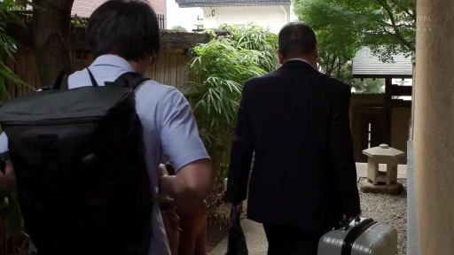 站立 · 紧身背心 · 日式庭院 · 全身背影 · 竹篱笆 · 挥手告别
