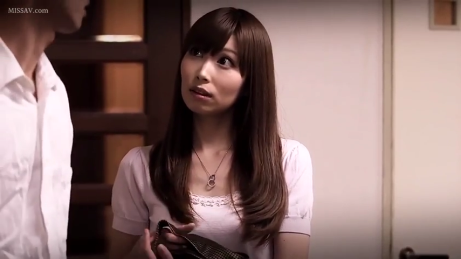 微笑 · 凝视 · 门口 · 正面站立 · 粉色紧身针织衫 · 胸部凸点