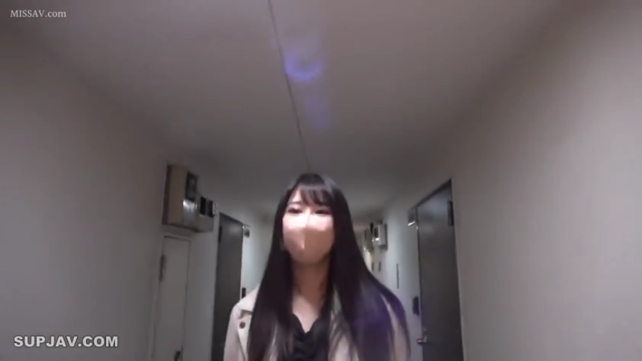 室内 · 站立 · 微笑 · 面部特写 · 注视 · 长发 · 白色T恤 · 单肩包