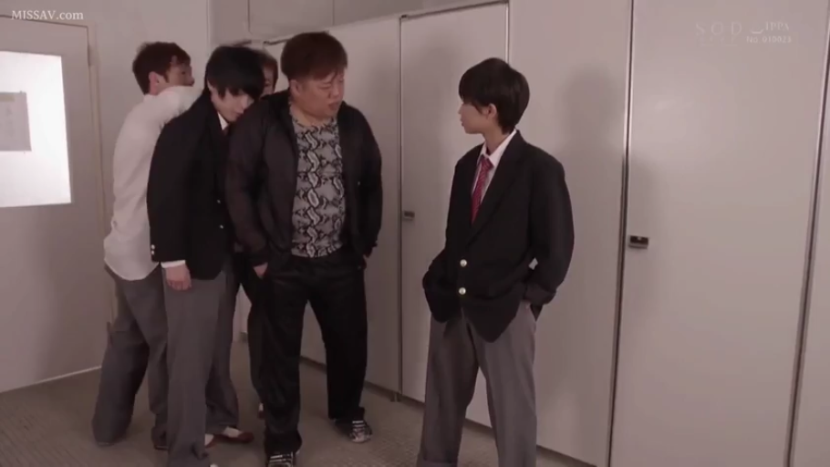 严肃 · 校服 · 站立 · 全景 · 多人 · 对峙 · 厕所